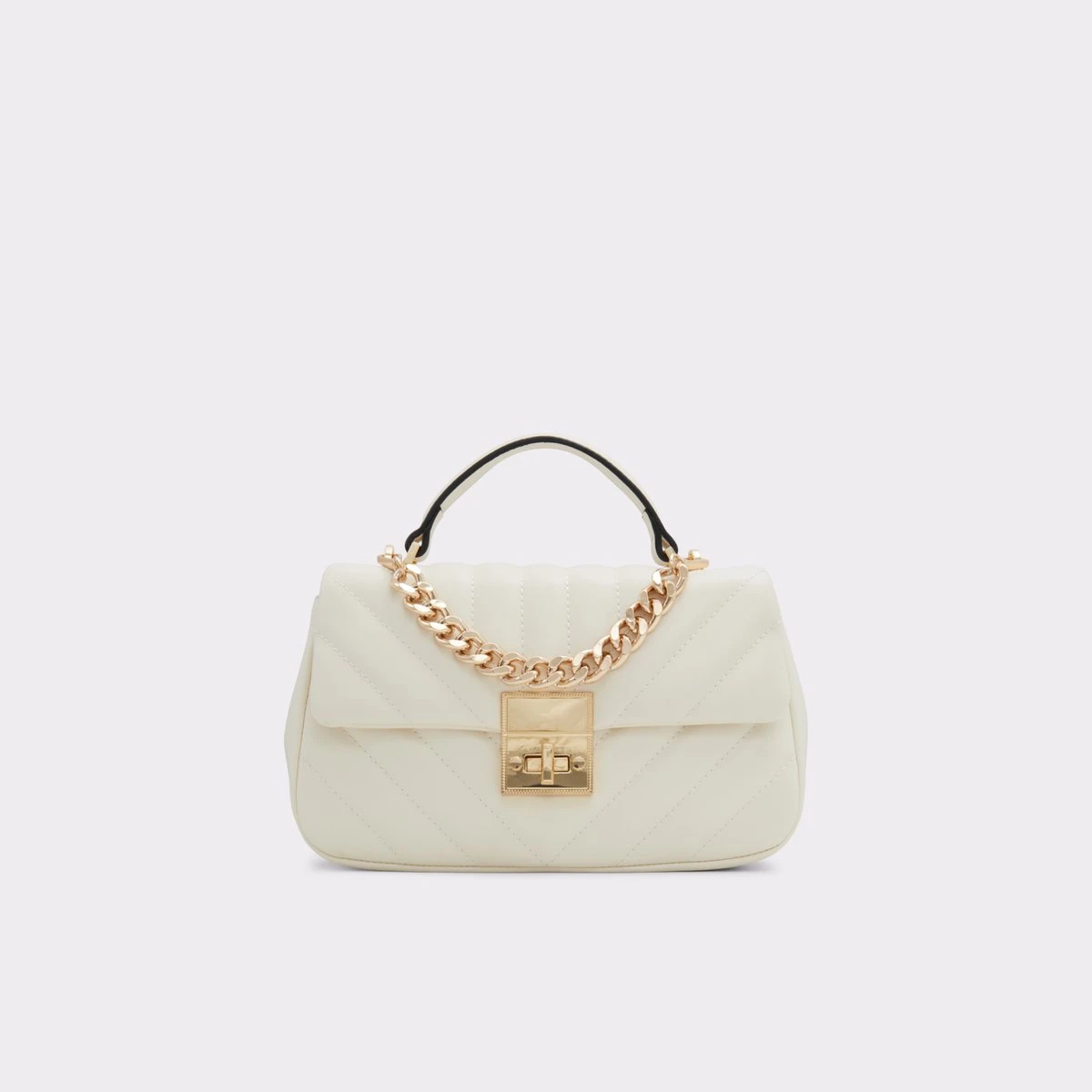 Secure your essentials in this quilted top handle bag embellished with a chic decorative chain.