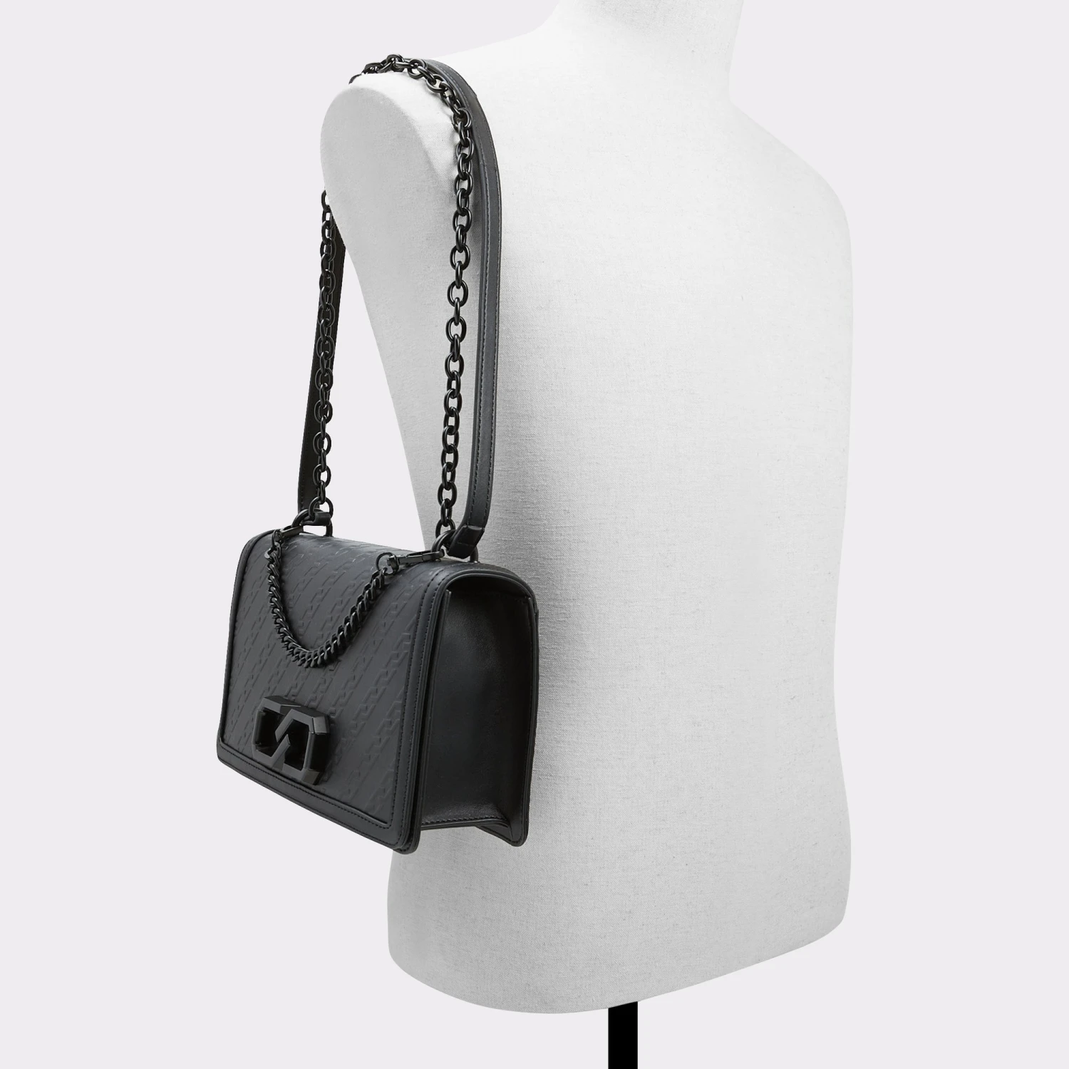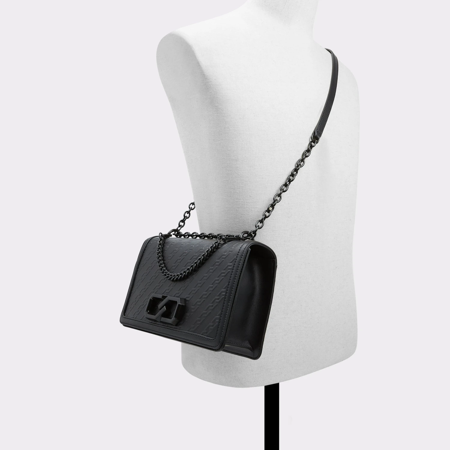 Chain detailing on chain detailing! This luxe crossbody bag is sure to complement your most glamorous looks.