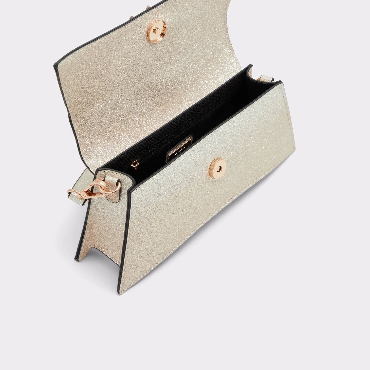 Flutter from event to event with this stunning top handle bag embellished with shimmering glitter and a delicate butterfly-shaped ornament.